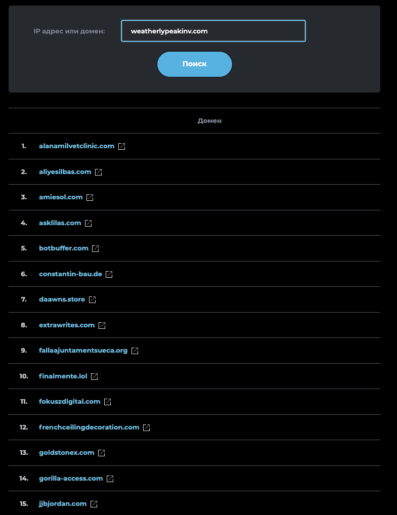 Еще один подозрительный момент заключается в том, что на одном IP-адресе вместе с сайтом Weatherlypeakinv Com размещаются несколько десятков других ресурсов. Совершенно исключено, чтобы сервис, который обеспечивает многомиллионные сделки, находился на дешевом хостинге. Владельцы настоящей инвест-платформы потратили бы 5-10 долларов на то, чтобы купить выделенный IP-адрес.