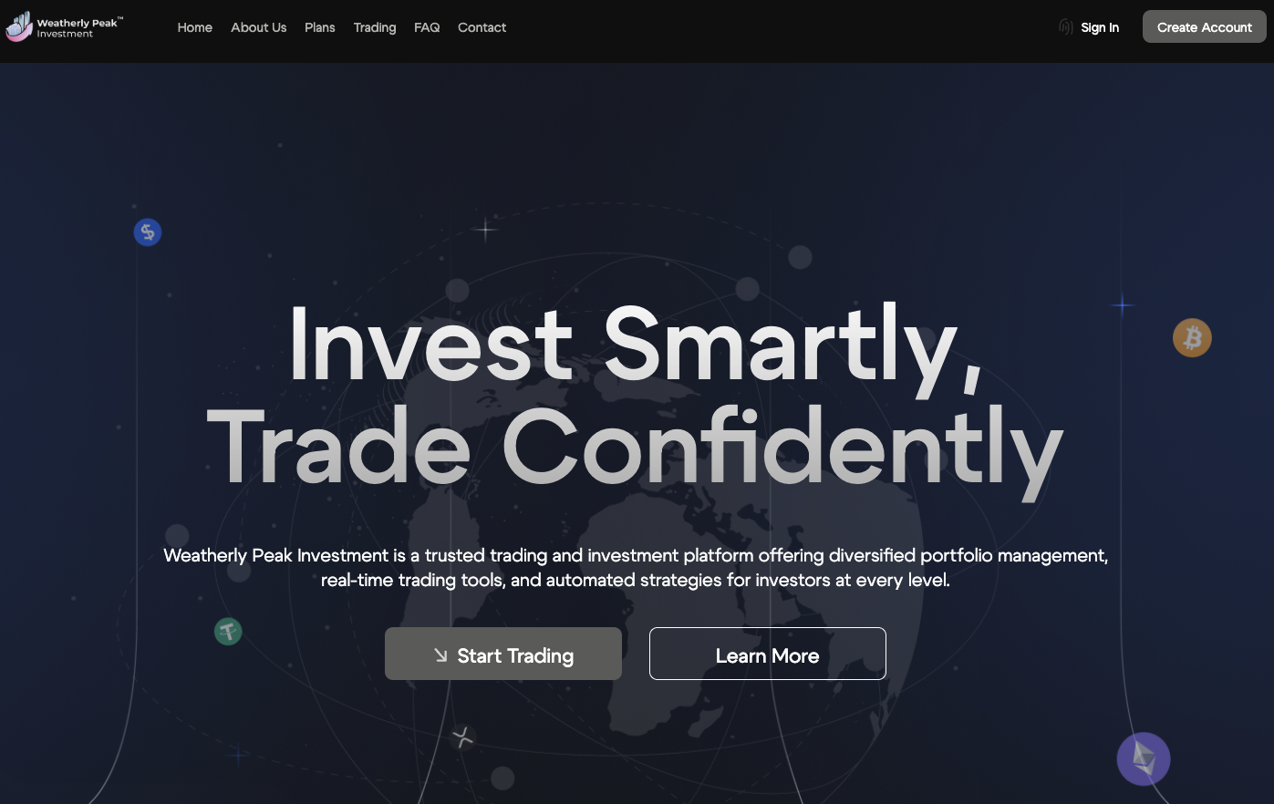 Weatherly Peak Inv обещает 4% за сделку, но сайт на дешевом хостинге и без инфы о компании. Очередной скам, не ведитесь.