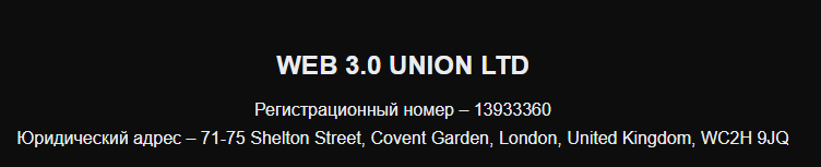 Также заметим, что на всех платформах используются одни и те же фиктивные данные о юридическом лице. По легенде проект зарегистрирован в Великобритании, вот только сайт целиком русскоязычный и возможности смены языка не предусмотрено.