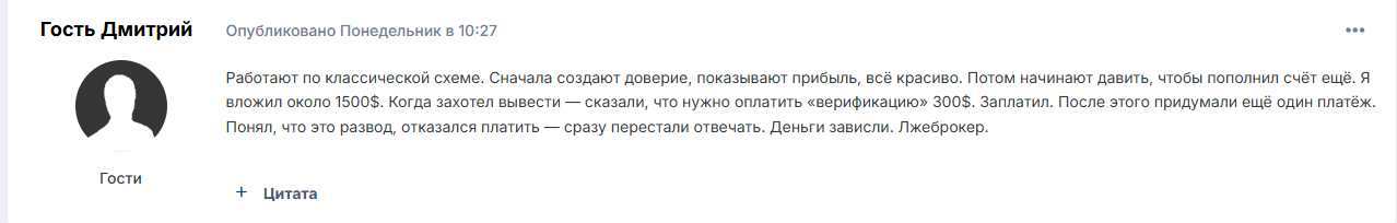 Когда человек пытается вывести средства, попытки блокируются. От жертвы начинают требовать дополнительных денег.