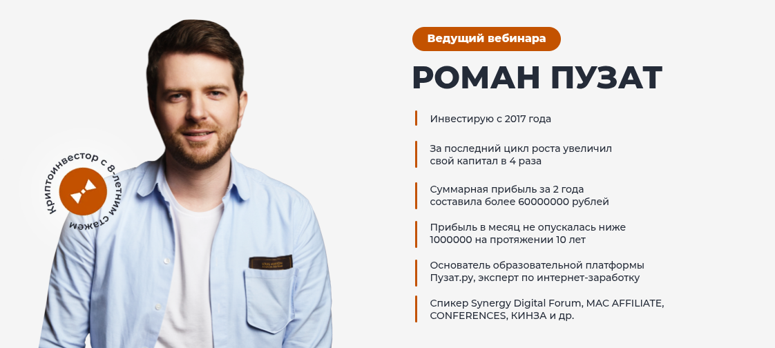 Публичное лицо проекта Web-Dohod Ru — Роман Пузат (Ширяев). Он называет себя интернет-предпринимателем, владельцем более 200 информационных сайтов и организатором конференций. На криптофорумах спикеру приписывают инвестиционный опыт с 2017-го, общий доход более 60 млн рублей за два года и ежемесячную прибыль от миллиона рублей в течение десяти лет. Однако независимых аудитов или подтверждающих финансовых отчетов нигде нет.