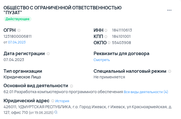 Легальный статус платформы Web-Dohod Ru абсолютно прозрачен: лендинги привязаны к российскому юрлицу ООО «ПУЗАТ». Бизнес официально начал работу 7 апреля 2023 года, а руководителем и учредителем числится Роман Павлович Ширяев. Организация имеет уставный капитал 10 тыс. рублей, реальные реквизиты, ИНН и юридический адрес в Ижевске на улице Красноармейской. Политика обработки персональных данных оформлена по всем правилам. В документах открыто указаны партнеры компании: ООО «СЕНЛЕР» и система «Геткурс».
