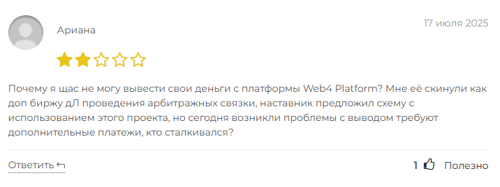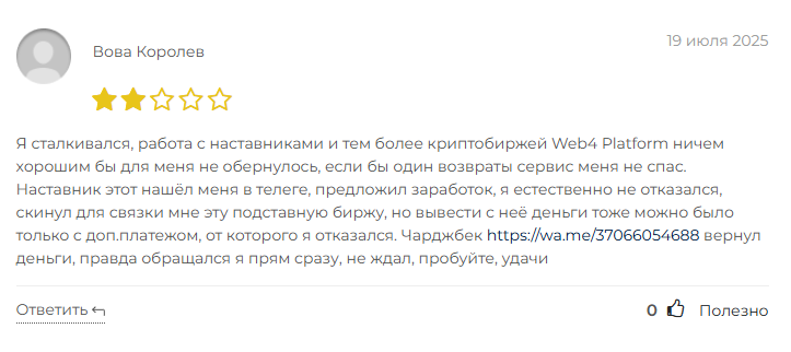 Отзывы о сотрудничестве с организацией web4 platform com от реальных пользователей