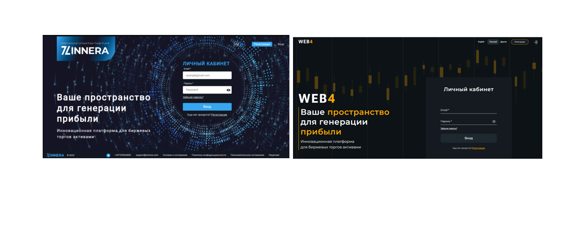 Дизайн сайта инвестиционной платформы web4 platform com полностью идентичен сайту zinnera com, разработчики заменили только фоновый рисунок.