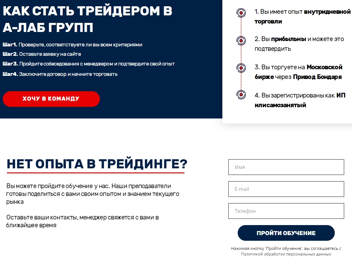 Цену платных курсов по торговле также не раскрывают, говоря лишь о требованиях к кандидатам на трейдинг через «А Лаб Групп» и WebCScalp. Предстоит доказать прибыльность и пройти собеседование, итогом чего вернее всего станут платеж за страховку и риск попасть под блокировку за серию убыточных сделок.