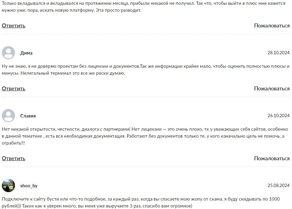 - Противоречивые отзывы, не убеждающие в безопасности трейдинга.