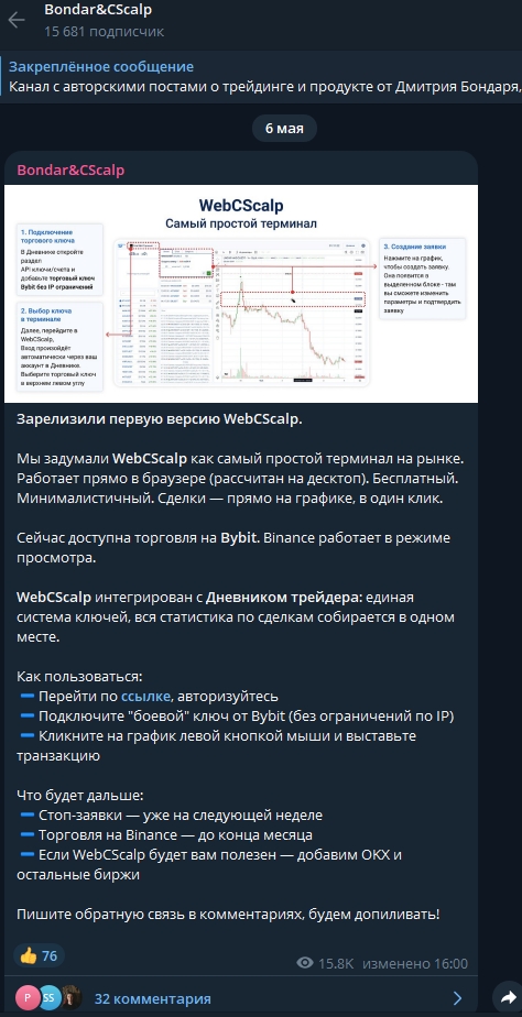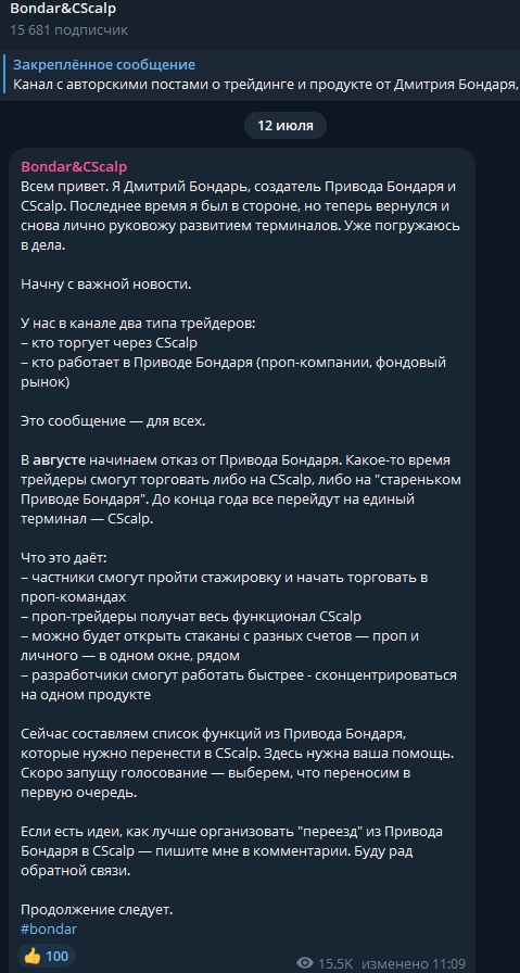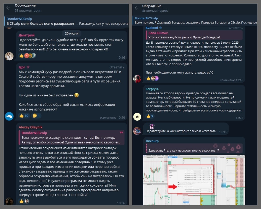 За 7 лет софт так и не был доделан, а Бондарь сотоварищи продолжают расспрашивать пользователей Telegram Bondar&CScalp о его багах. Это странно и говорит лишь о «сырости» WebCScalp, который якобы полностью бесплатен.
