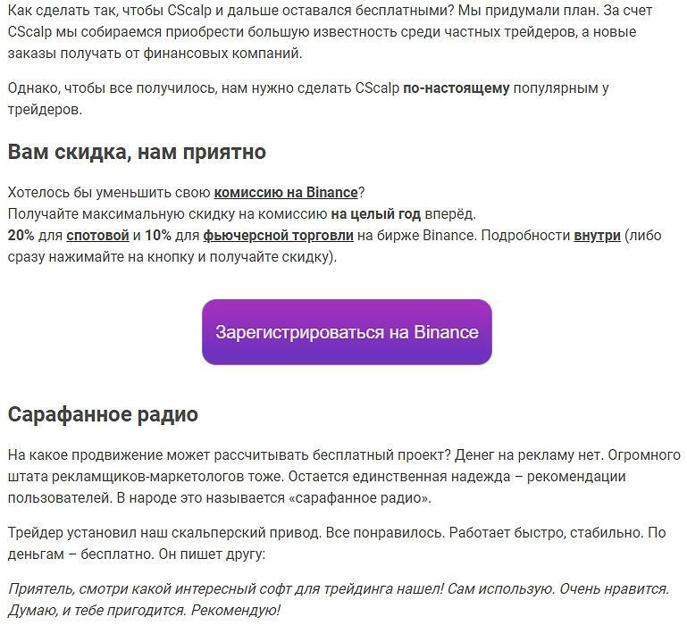 Создатели софта умалчивают и это, зато при рассказе о «бесплатности» терминала не забыли напомнить о рефпрограмме «Бинанс».