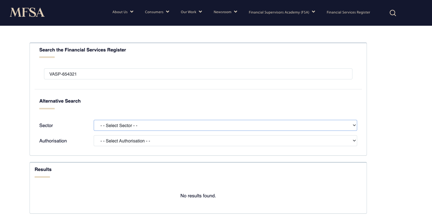 Эта информация, само собой, является недействительной, так как лицензии якобы выданы за 4-5 лет до создания проекта. Но в качестве доказательств покажем, что такой компании на Мальте нет: