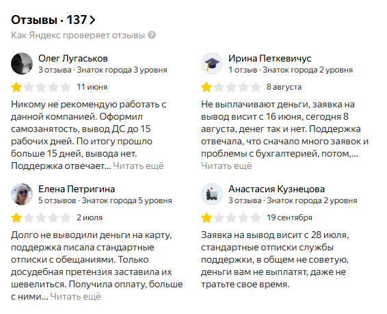 В интернете на независимых площадках много негативных отзывов о «Воркле Ру». На сервисе Яндекс.Карты люди жалуются на проблемы с выплатами.