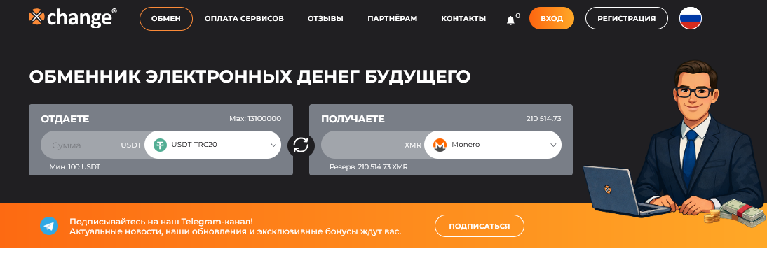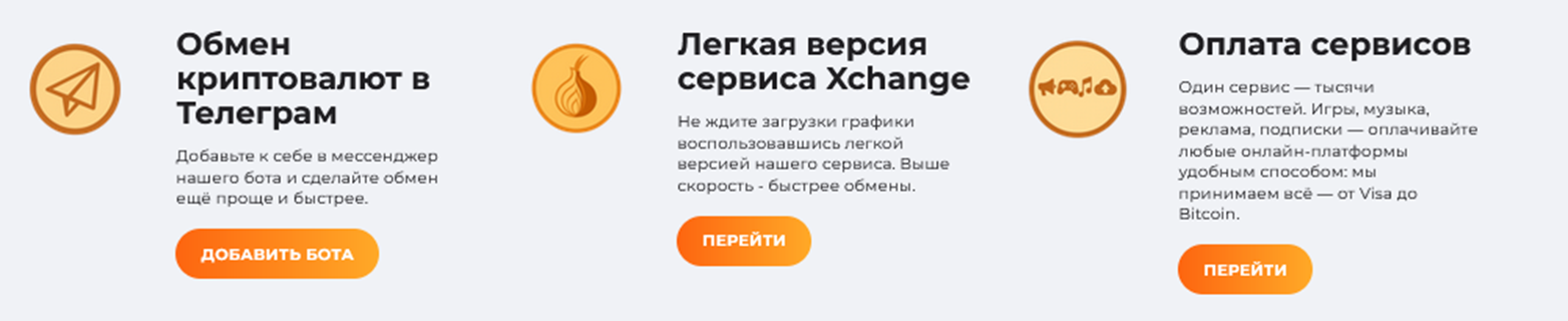 - xchange exchange bot – официальный бот обменника в Телеграмм;