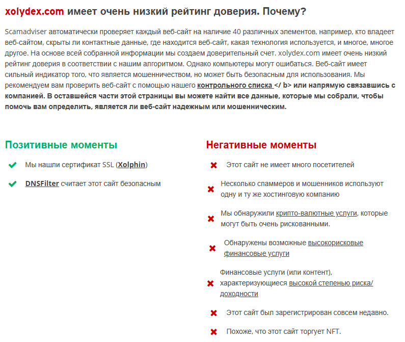 В целом проект оставил после себя негативную репутацию. Положительных отзывов об этой площадке найти не удалось, а то, что домен XolyDex com был активен лишь на протяжении короткого времени, подтверждает предостережения со стороны криптосообщества.