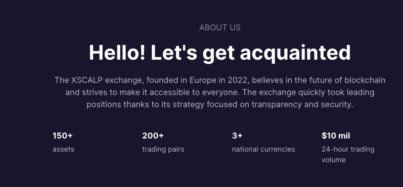 XScalp – криптовалютная биржа, на сайте которой пользователям предлагают возможность торговать и инвестировать в более чем 150 цифровых активов. Создатели сервиса говорят о доступе к спотовой, маржинальной торговле, фьючерсам, рассказывают о скором запуске собственной криптовалютной карты. Но при ближайшем рассмотрении проекта становится понятно, что он с высокой долей вероятности связан с реализацией мошеннической схемы. Доказательства того, что платформа может быть фейковой, предоставим далее.