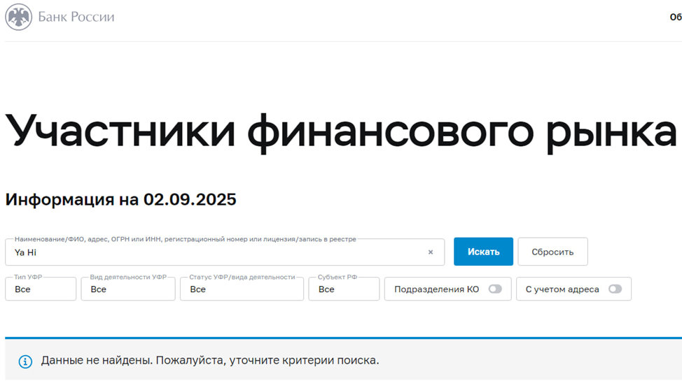 Мы провели анализ деятельности Ya Hi Com. Сразу понятно, что это был мошенник, который может продолжать обманывать людей и сейчас. Он не имел лицензии от Центрального банка РФ, и писали о нем только отрицательные отзывы. Мы не рекомендуем пользоваться подобными брокерскими конторами. Вы легко можете потерять свои деньги и конфиденциальные данные. Оставьте отзыв, если вдруг сталкивались с «Я Хи».