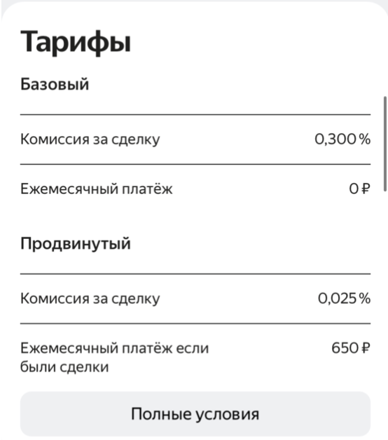 Яндекс Инвестиции – полный провал! Комиссии за пополнение, 0,3% за сделки, а ещё 8 тысяч в год за «Продвинутый» тариф. Закрылись в 2022-м, оставив клиентов ни с чем.