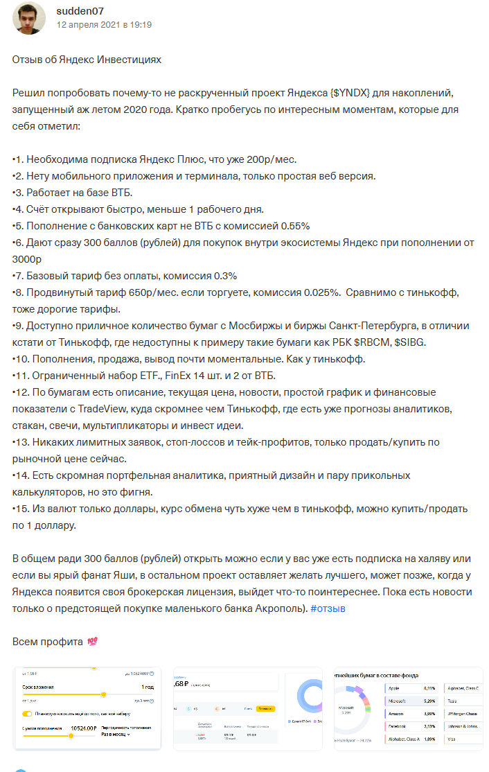 Яндекс Инвестиции отзывы вложивших