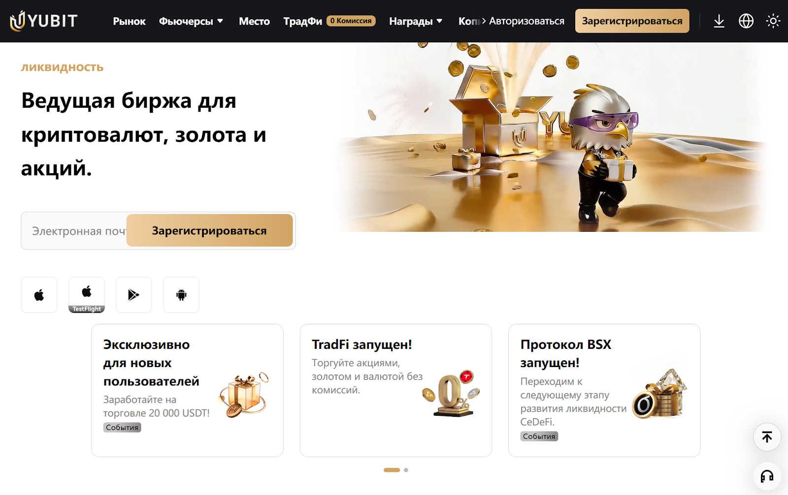 Yubit — CEX-биржа, запущенная летом 2020-го и привлекающая клиентов торговлей с применением многих активов. Пользователям предлагают заработок на золоте, крипте и ценных бумагах. Предусмотрена опция копитрейдинга и круглосуточная поддержка. Представители платформы предлагают доступ к мировым рынкам, но какое-либо регулирование и лицензию не подтверждают.