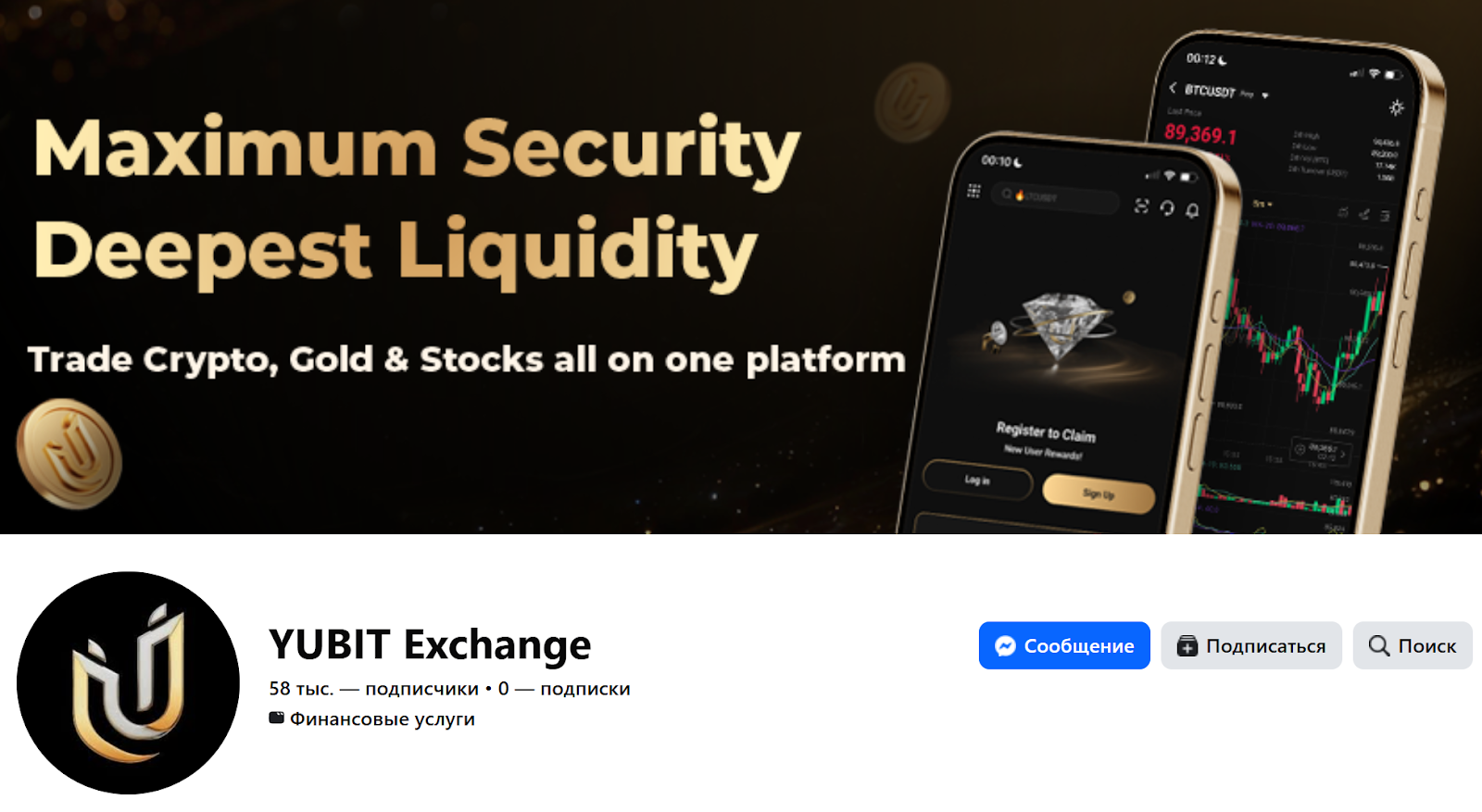 Есть также аккаунт в Фейсбуке, к которому подписалось около 58 тыс. человек. Здесь регулярно публикуются сведения касательно листинга токенов и новостей платформы. На конец февраля к YUBITEXCHANGE подключено около 58 тыс. человек.
