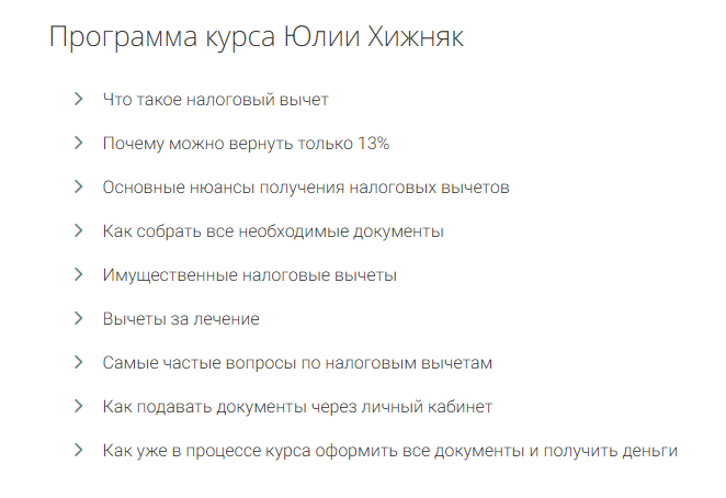 На середину февраля 2026 года можно купить слив курса Юлии под названием «Налоговые вычеты: выжать максимум». Стоимость набора уроков – ₽1,490-4,990 в зависимости от выбранного тарифа.