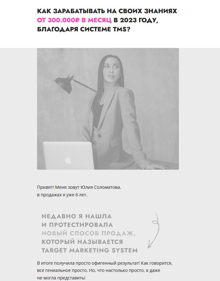 В презентационных материалах говорится, что после обучения возможно зарабатывать от 300 тыс. рублей в месяц. Сам курс длится 30 дней. Что потребуется делать для того, чтобы начать зарабатывать по системе Юлии Соломатовой: