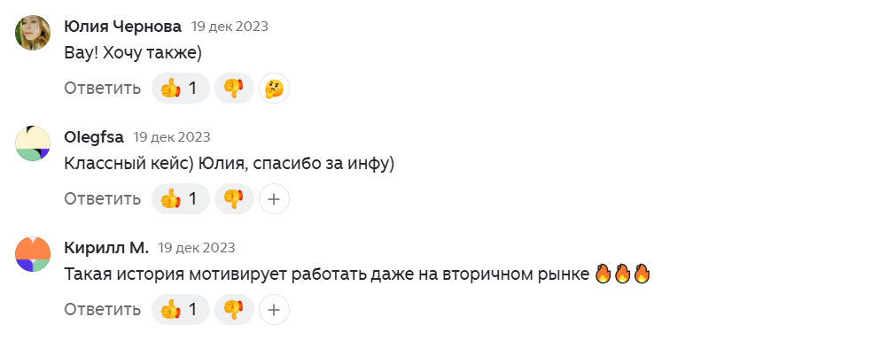 Подписчики оставляют положительные комментарии, в которых благодарят инвестора за идеи и понятный разбор стратегий. Однако их немногочисленность не позволяет позиционировать Юлию как настоящего профессионала в сфере финансов.