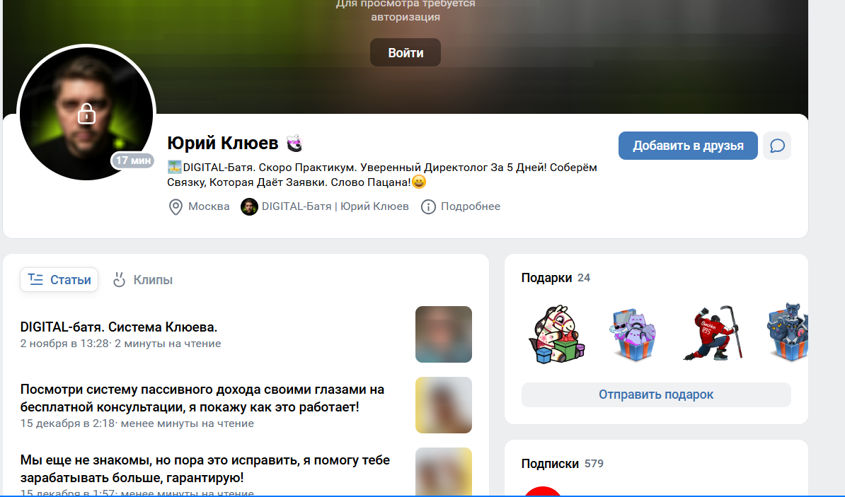 У автора есть страница в ВК, у которой более 900 друзей.