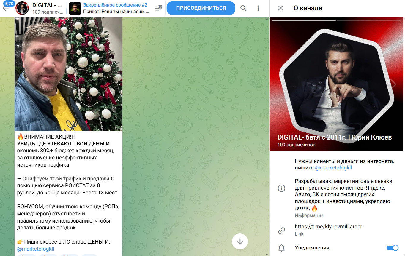 Проект Юрий Клюев Подработка в Телеграмме отзывы в сети еще не получил. Основатель сообщества называет себя успешным фрилансером, который создал собственное маркетинговое агентство KLYUEV. В своем блоге делится рекомендациями по заработку в интернете, а также предлагает пройти интенсив на тему рекламы. Далее мы расскажем о деятельности Юрия подробнее.