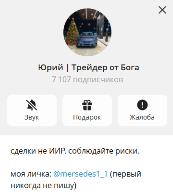 Очередной «гуру» трейдинга без имени и лицензии, скрывающийся за ником @mersedes11. Закрытые комментарии, накрученные подписчики и картинки с «прибылью» вместо реальных сделок. Похоже на очередную схему по выкачиванию денег из доверчивых инвесторов.
