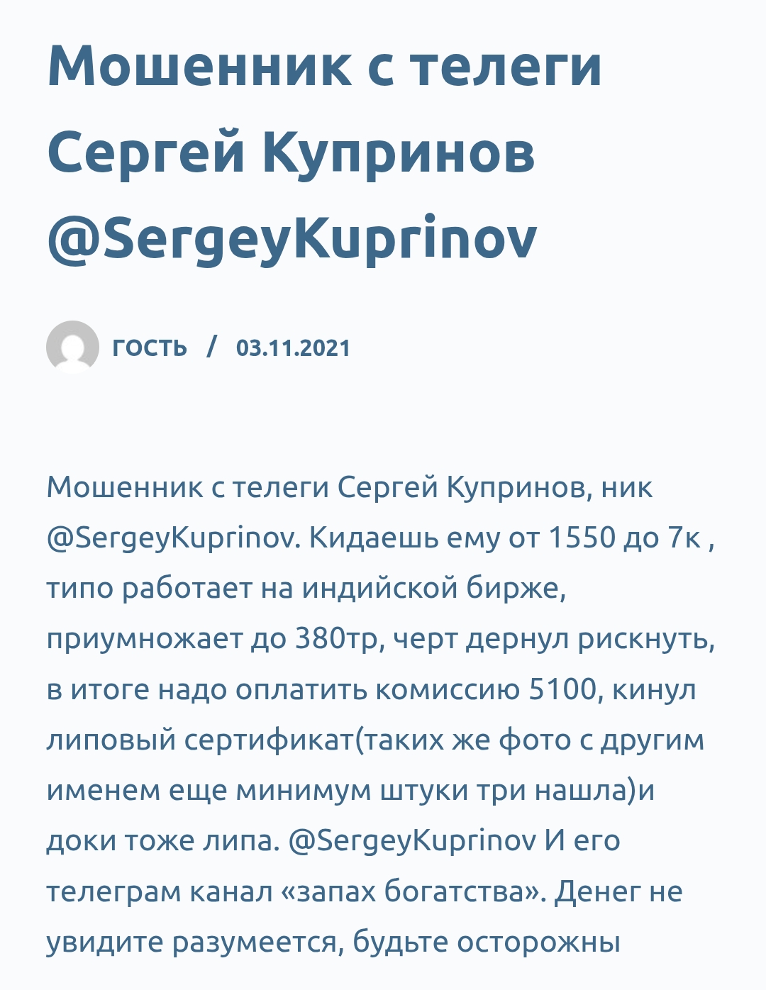 Разбор телеграмм-канала «Запах богатства»: отзывы о Сергее Купринове и анализ тг-проекта Sergey Kuprinof