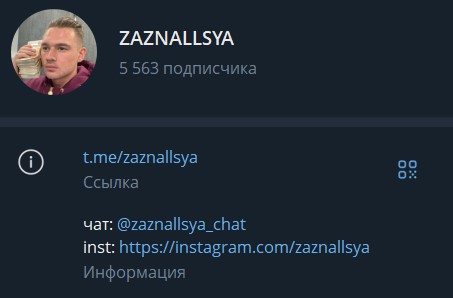 На Телеграмм-канал Zaznallsya подписаны 5560 человек, еще 13 000 находятся в его Instagram. Также у проекта есть чат в ТГ Zaznallsya chat. Владелец сообщества работает открыто, не скрывает лицо, может представляться реальным именем.