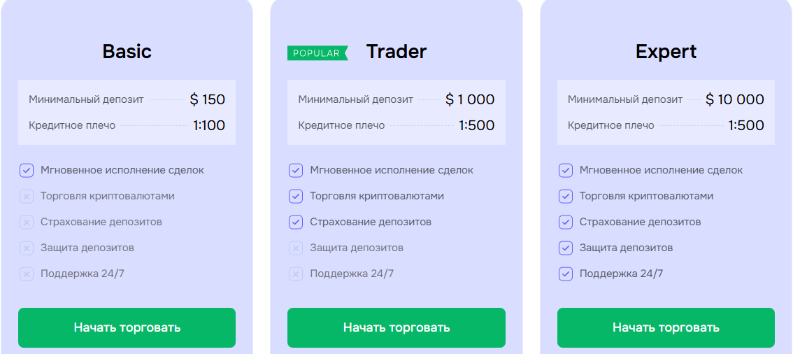 - Basic стоит 150 долларов с плечом 1:100;