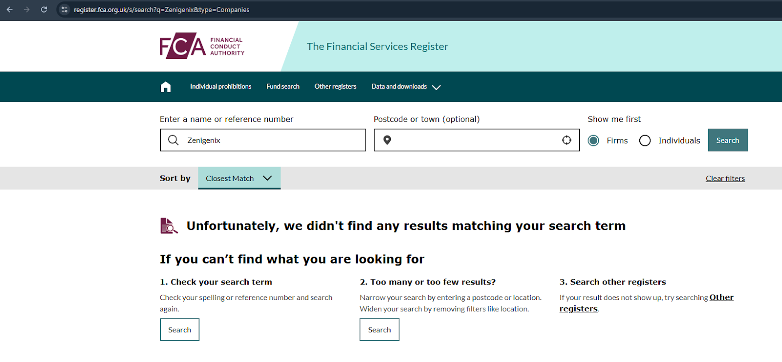 Скорее всего, ZeniGenix com нигде не зарегистрирована, поскольку у нее нет цифрового следа и настоящих документов, а через реестры ее найти не удается.