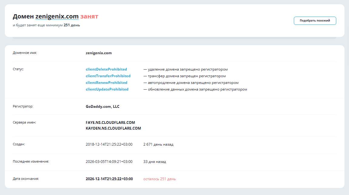 В документах мы нашли информацию о том, что брокер ZeniGenix com работает с 2017 года, но отчет говорит о регистрации домена только в конце 2018-го.