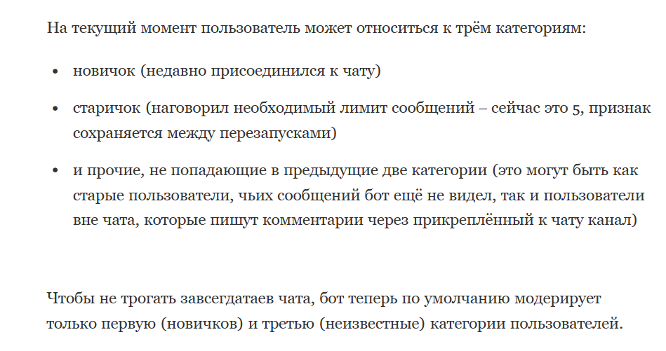 - Система блокировки пользователей во всех подключенных группах может приводить к избыточным ограничениям без возможности оперативного обжалования.