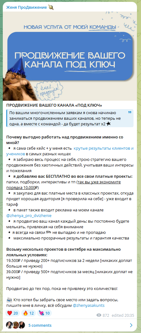 Проверка Телеграм-канала Женя ПроДвижение: отзывы пользователей, какие услуги предлагает автор