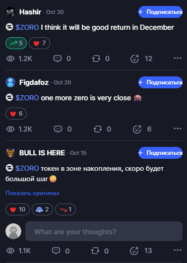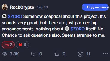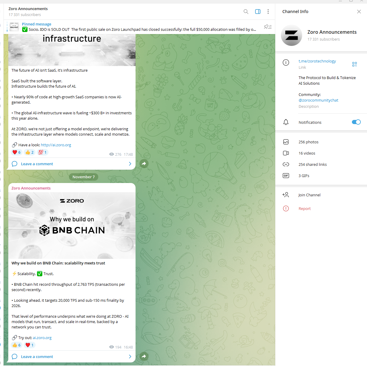 В Телеграм на канале Zoro Announcements 17+ тысяч подписчиков. Только публикации просматривает в лучшем случае две-три сотни пользователей. Видно, что проектом мало кто интересуется.