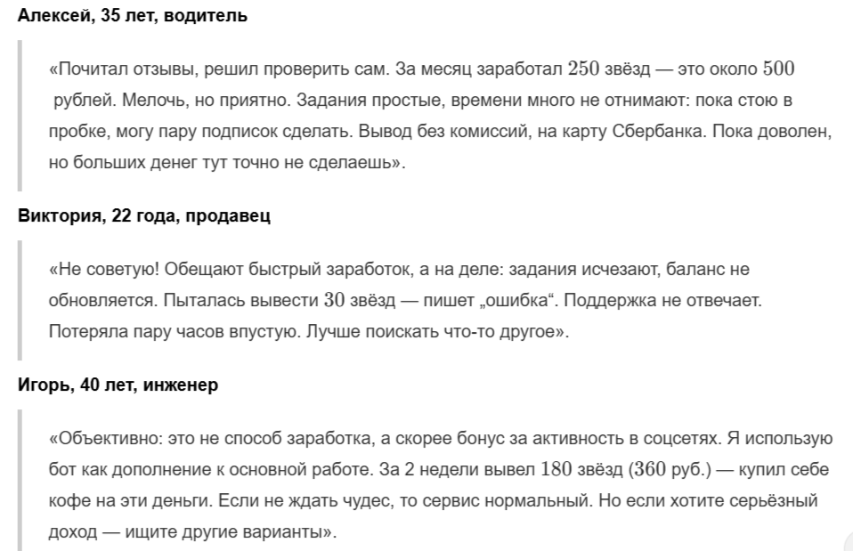 Отзывы о телеграм-боте Starsy Zarabotox Bot